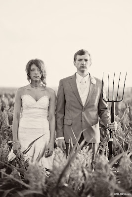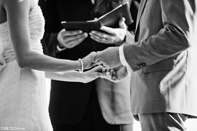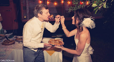 Maybe it's because the groom, in his three-piece suit, reminds me of my sweetheart. Maybe it's the drop-dead gorgeous venue: the ceremony set between two large oak trees with the sun setting warmly behind them and a barn full of your nearest and dearest. Or perhaps it's the Dora, which is always going to do something magical to my heart.Brit and Daniel's wedding, photographed by Carl Zoch, first featured on Ruffled, has been blazing across the blogs and I've been sitting on my hands waiting to show it to you; As No 299 it obviously has a very special place in my heart. These two San Francisco-based designers were married at Brit's childhood farm, and their RSVP cards included a request for recipes which the newlyweds eagerly added to their burgeoning cookbook collection. The entire reception was catered by guests; everyone brought their best dish! Plus, these two had pie after pie, just like I plan to serve for Thanksgiving. Not only was this a beautiful event, it celebrated the love between two incredible people.