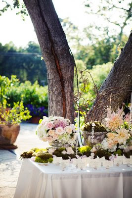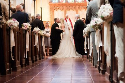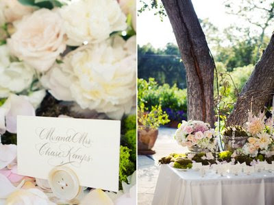 Designed by Ariel Yve and photographed by Raya Carlisle, this is a wedding to end all weddings. I first spotted on Style Me Pretty months ago, but I knew I wanted to wait for a very special post to feature it. Sarah and Chase got hitched on a beautiful May day in Santa Barbara, and their reception was held at the Rockwood Women's Club. The beauty of the Dora may have actually been outshone by the gorgeousness of this event.Camille Panzarello of Modern Day Design created distinctive centerpieces using a combination of hydrangeas, peonies, garden roses, viburnum and tulips, and the same soft, dewy flowers made their way into every boutonnière, altar decoration and bouquet. I especially adored the button details; three mother of pearl buttons were sewn together to create gorgeous stands for each of the escort cards. The sublime wedding cake was a simple 4 tiered ivory buttercream delight, bursting with blush peonies, and the couple sliced up their tasty treat using the bride’s grandfather’s authentic Civil War sword-a tradition that’s been carried out at Warren Family weddings for decades.