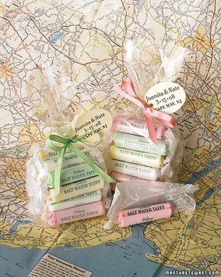 love for Marge is salt water taffy, a Jersey beach staple which happens to be one place she's happiest. While I'm not sure she'd go for the packaging in this image, c/o Martha Stewart Weddings, I can imagine big pails full of these delicious, chewy treats at Marge's relaxed reception.