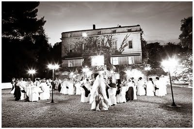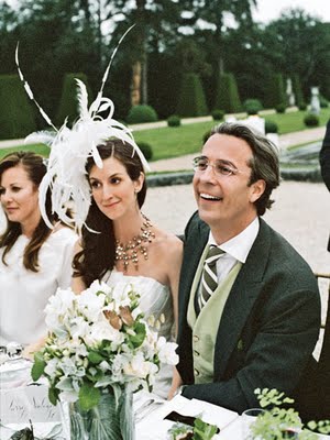 When New York interior decorator and stylist Kelly d'Halluin, née Kapica, and art-loving grande famille scion Nicolas d'Halluin decided to wed, their celebration was staggeringly chic. The eighteenth-century fête champêtre set to twenty-first-century music was held at the seventeenth-century Château de Breteuil in the countryside near Paris with cocktails in the gardens, candlelit dinner on the terrace — at a single long table set for three hundred guests — and music and dancing in the grand salons.The bride wore a white plumed fascinator, a 1950s sculptural collar by Line Vautrin and a couture gown by J. Mendel, while the groom chose a vest in Gainsborough velvet from F. Schumacher & Co.