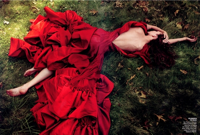 I know that none of you will be surprised when I confess that Audrey Hepburn is one of my major style influences, and in Funny Face probably more so than any other film. It's the story of a mousy bookshop clerk discovered by Fred Astaire (based on Richard Avedon, who recently showed at SFMoma) and Kay Thompson, who decides she's the new face of Quality Magazine. Naturally, she rebels and then has a series of incredible and inspired costume changes by Hubert de Givenchy, who designed nearly all of her incomparable costumes. In this film, the phenomenal skinny black ciggarette pants (which you might recall from a recent GAP advertisment) and the drop waist tea-length tulle skirt wedding dress with a bateau neckline take a leading role. And then, of course, this beautiful red gown.Just go rent the movie. The clothes are wonderful, and everytime she and Fred Astaire sing "S'Wonderful", I enjoy the most well-deserved happy tears.