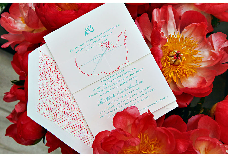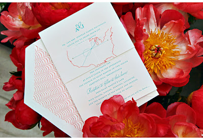 As much as I adore a beautiful invitation, my favorites are always the ones that tell the couple's story. This gem, stunningly photographed in a bed of coral peonies, features a sweet belly band that represents the couple's San Francisco home and Pennsylvania wedding in the bride's hometown; who could resist such a charming invitation?Photo by Art of Love by Marie Labbancz.