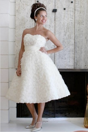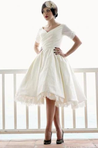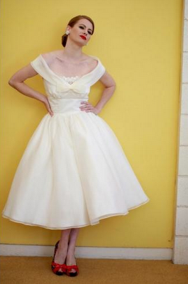 Short wedding dresses are usually also labeled "casual", but Dolly Couture's sweet, 1950's-inspired dresses are anything but. And with the entire collection easily coming in at under $1,000, wedding dress shopping suddenly seems a lot less painful on your pocketbook. Above are just a few of my favorites: the Beverlywood (pictured in the latest Martha Stewart Weddings), the Edmonton and the Beverly Hills, which looks a whole lot like an adorable Monique Lhuillier with a much smaller price tag!