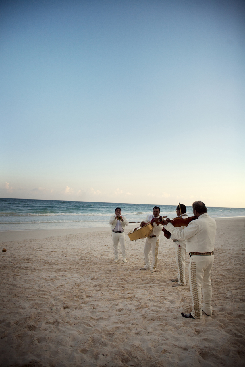 Guests joined the barefoot couple for a "cosmic wedding ceremony" lead by locals Charlie and Maria. Each guest played a role in the ceremony, and a five piece Mariachi band dressed all in white serenaded the guests immediately after. They also lead the way to the bar for margaritas-a pretty perfect touch, if you ask me.