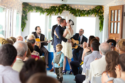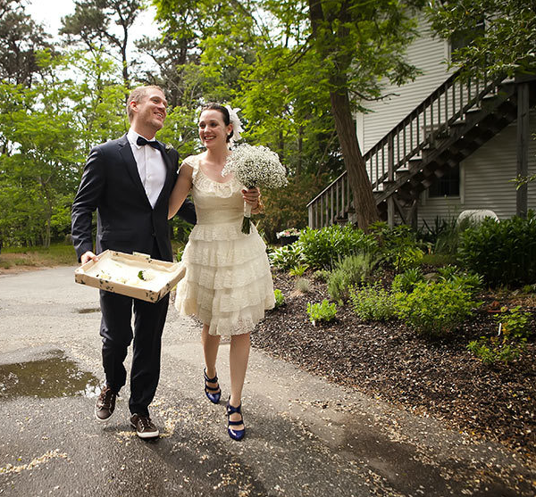 ReplyDeleteGarsh...I love her dress and his shoes! So original! Weddings are so fun these days!