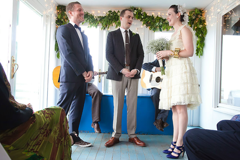 An East Coast clambake wedding, complete with Pimm's Cups and candlelight? Count me in!First spotted on Snippet & Ink, this beauty of a celebration is all DIY, and an inspiration for anyone with a crafty bone in their body. Using the motto "Sweet and Simple" to guide them, this Brooklyn-based couple tied the knot on the water in Cape Cod.