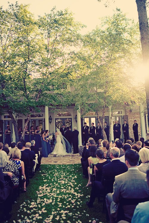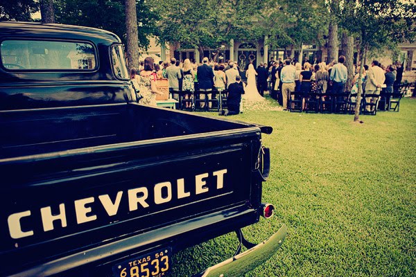 The two were married on the front porch, were Cason proposed, and Callie made her entrance in a 1950's Chevy truck. After the ceremony, guests headed to a tent across the lawn, where sweet tea and margaritas were served. Party Thyme Catering provided an elegant Southern repast, and the buttercream confection and chocolate-covered groom's cake were promptly devoured. Katy House of Flowers arranged blush roses and ivory hydrangeas to match the bride's bouquet and the wreaths hung on the front door, and Abigail Seymour was on hand to capture each exquisite moment. Just lovely, don't you agree?
