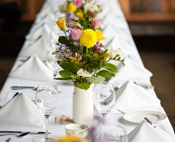 Callie and Cason were married at her parents' home, and crafted most of the wedding by hand to ensure that each of the 180 guests felt like they were attending an intimate dinner party, rather than an over-the-top fête. The bride wore a