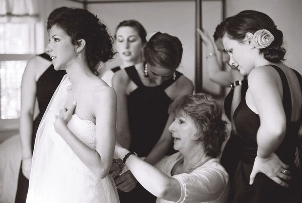 This wedding brought the bride and groom's families together in a magical way: the groom's father, a pastor, married the couple. The bride's sister-in-law's mother (talk about a mouthful!) was Natalie's second-in-command when it came to wedding planning and design. Her friend and bridesmaid baked their croquembouche wedding cake, and another baked the rest of the magnificent dessert table. The couple recruited a buddy who's an electrician strung all the lights and chandeliers at