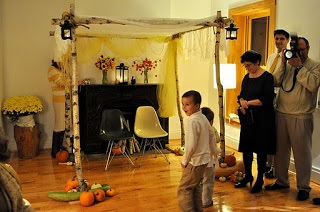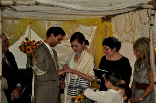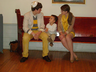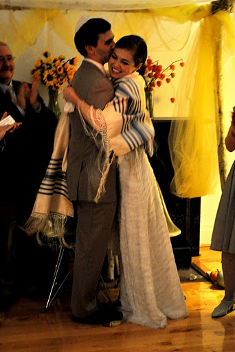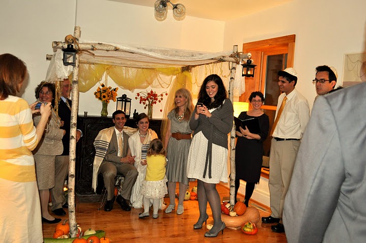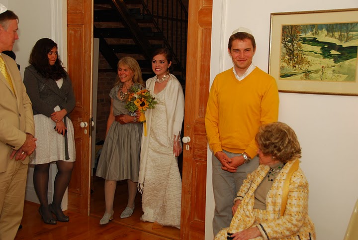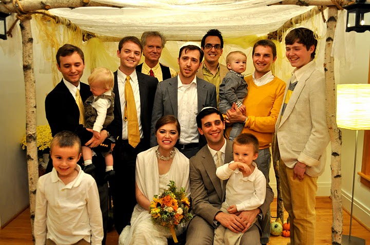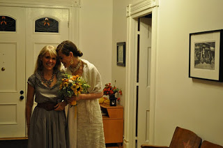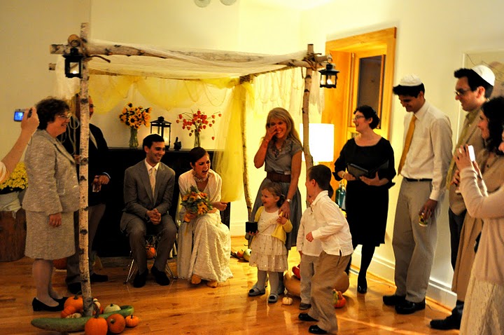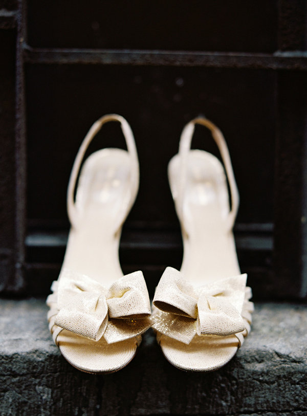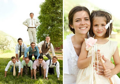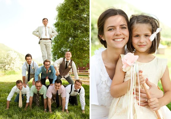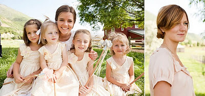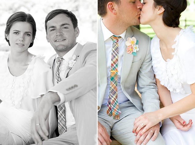 The bride designed her gown, then her mother, a talented seamstress, whipped it up for her, along with the darling flower girls' dresses. Bridesmaids and groomsmen were asked to wear light colors, while Adam wore a seersucker suit from J.Crew with a plaid vintage tie and tie clip. Tessa made felt flower corsages and boutonnieres for the bridal party and ribbon wands for the flower girls, but did count on a florist to build her lovely bouquet, filled with garden roses and billy balls.