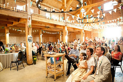 Tessa's bunting flags decorated the barn, and the couple served hot dogs from J Dawgs. Family and friends baked the cupcakes, pies, bundt cakes and donuts that filled the dessert table, and guests washed down their sweets with milk from old-fashioned milk bottles. On hand to capture each sweet moment was the talented Jessica Peterson, Tessa's former roommate; thank you, Jessica, for sharing these wonderful photos with us!