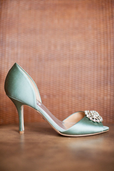 A slim heel, d'Orsay silhouette and mint green satin, all topped with a bejeweled brooch-that's my idea of heaven!