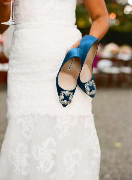 Image by Sylvie Gil Photography, "Something Blue" satin pumps by Manolo Blahnik.