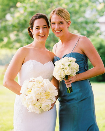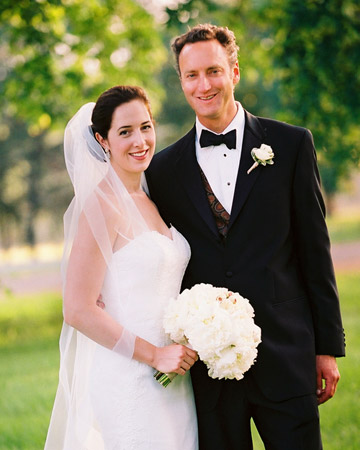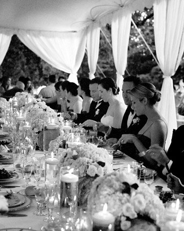 haricots verts, and a slice of the five-tier coconut-covered confection by Cakes of Art. Emme St. James and Her Jazz Gentlemen played jazz standards, including "At Last" for the newlyweds' first dance, while guests dined, but to mark the end of dinner and the beginning of dancing, the couple relied on something truly explosive-fireworks! And talented photographer Jen Fariello was on-hand to capture each gorgeous moment, first spotted on Martha Stewart Weddings!