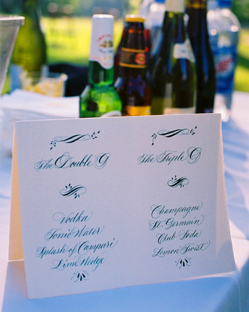 After the ceremony, guests took in their palatial surrounds with cocktails on the lawn-the Double G, a vodka tonic with a splash of Campari, and the Triple G, a St Germain tipple. They joined the newlyweds under the tent, filled with hydrangea arrangements and floating candles, for a dinner by Have Food-Will Travel, including fillet of beef au poivre with Madeira sauce, and grilled