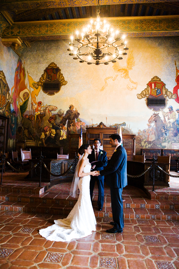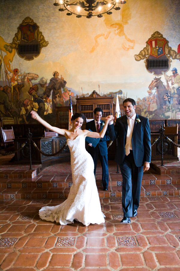 As John and I plan our wedding day, we've agreed (thank goodness) on a few things, one of which is that we won't be getting married in a church. I love that Corrine and Christian, who also aren't religious, found a place with deep significance to the Art History and Law students, respectively-the Santa Barbara Courthouse. These two planned a celebration that was perfectly tailored to the two of them, and I must say, I'm smitten!