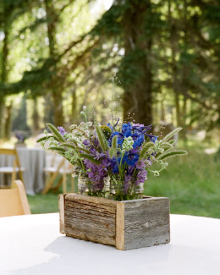 those old wooden boxes with the flowers are a genius idea for centerpieces!