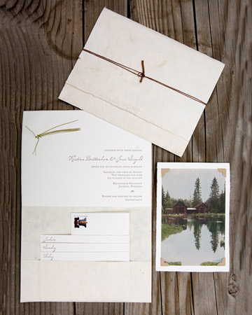 Guests knew they were in for a naturalist celebration from the moment they opening Tiny Pine Press' beautiful stationery suite-a hand-colored photograph of the house and pond served as the couple's save the date, and the invitation featured a twig and twine closure. Guest bags included local delicacies like Cowboy Chocolate, and an acre of rainforest, to offset the wedding's carbon footprint.