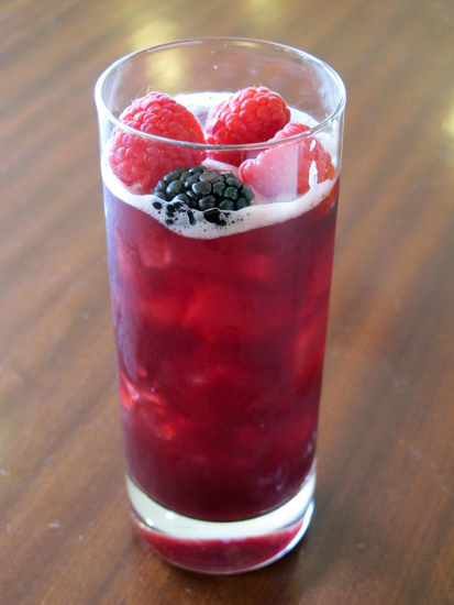 Combine all ingredients in a shaker with ice; shake for 5-10 seconds, then pour into a Collins glass. Garnish with fresh berries.