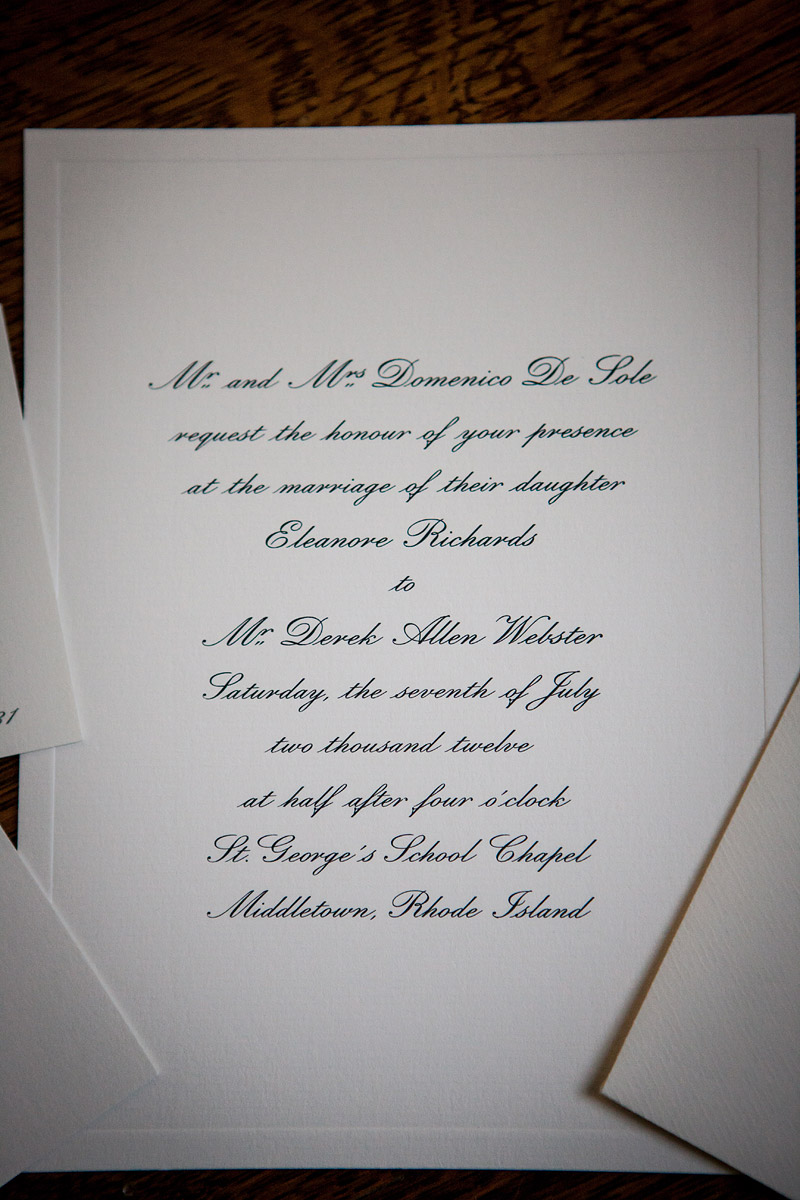 Classic engraved invitations from Smythson invited more than 300 guests to St. George’s School Chapel in Middletown, Rhode Island and a reception to follow at New York Yacht Club.