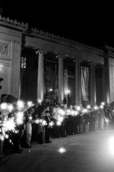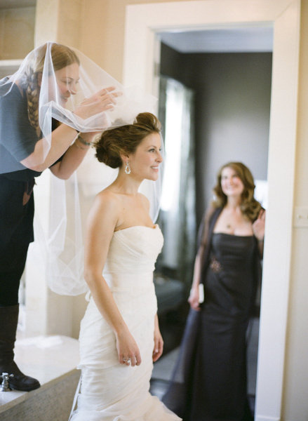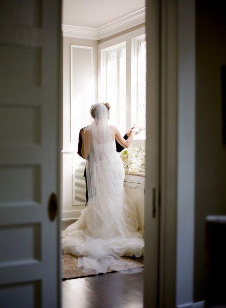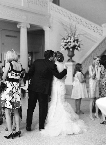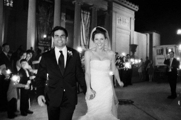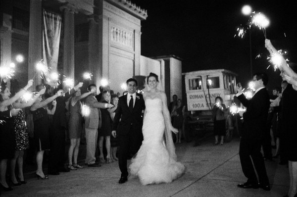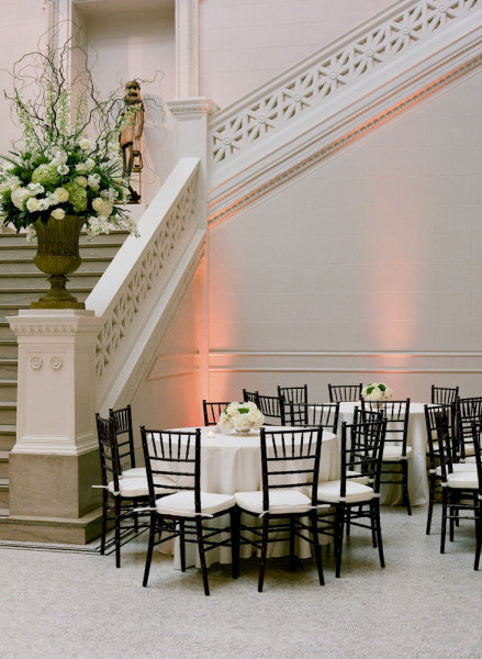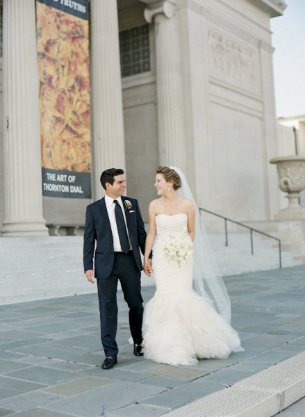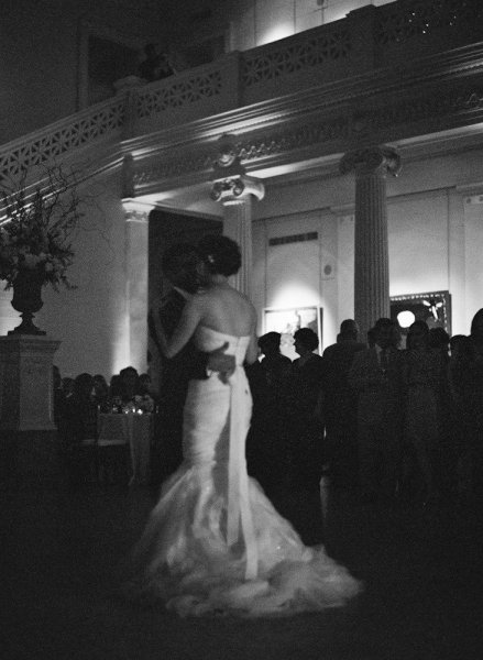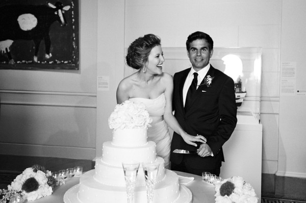Mary wore a spectacular Vera Wang gown paired with Jimmy Choo wedges while her maid of honor looked chic in an ivory one-shouldered column with a black sash, and they both looked naturally stunning thanks to Tia Reagan of Freebird Productions. After their romantic first look, Nicholas and his bride rode together to the museum in a vintage Rolls Royce.
