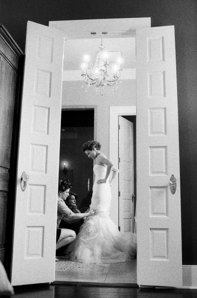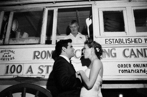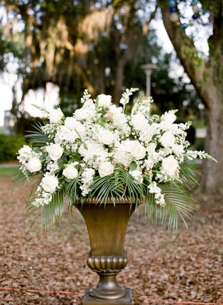 In front of a pair of matched urns filled with green and white roses, ranunculus and hydrangeas by Perfect Presentations Florals and Event Design, the couple exchanged their wedding vows before mingling with guests during the cocktail hour on the lawn. Joel catered the sumptuous dinner inside the museum followed by a buttercream swiss dot cake topped with hydrangeas from Haydel’s Bakery. The newlyweds surprised their guests with a visit from the Roman Candy Man for homemade taffy and Crescent City Soul had all the guests dancing until a spectacular sparkler exit!