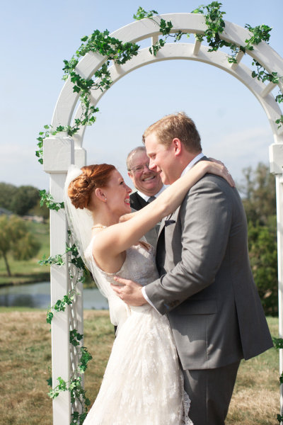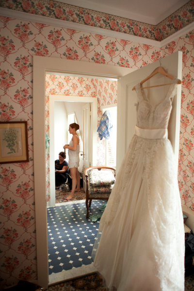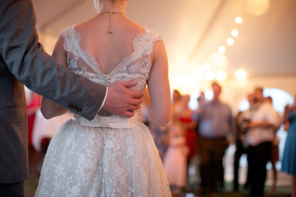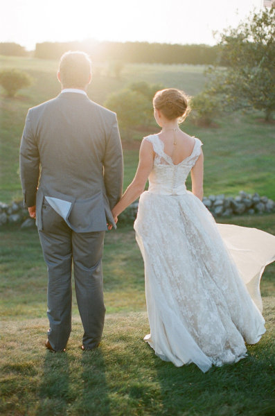 The bride's uncle officiated the outdoor ceremony, during which Mary and Harold shared their own vows, sealed with an impromptu high-five-and, of course, a kiss. Dinner was preceded by a blessing and a traditional Scottish grace, in honor of the couple's shared heritage, and featured an enormous raw bar. And as the bride slurped an oyster in her heirloom gown with her nearest and dearest by her side, she knew it had been a beautiful day.