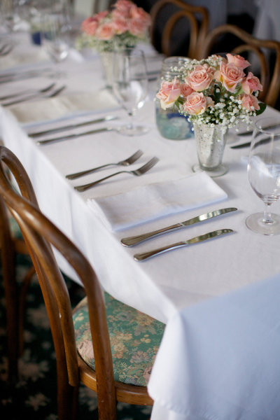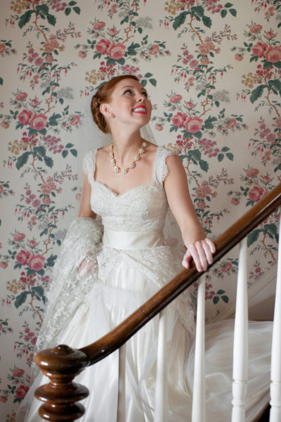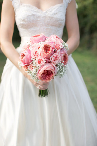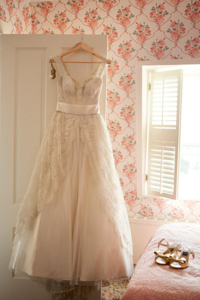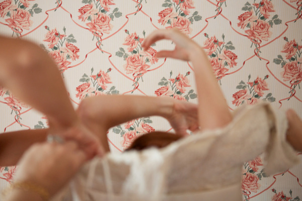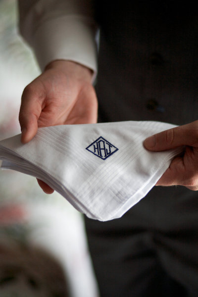 Maybe it was the pretty pink roses, or the floral wallpaper that looked so much like my childhood bedroom, or the fact that I gave John those same monogrammed handkerchiefs a few Christmases ago-but I was in love with this wedding from the moment I first saw it.