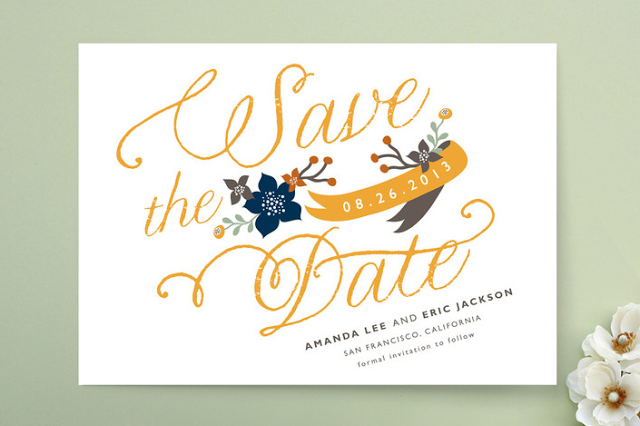 Fanciful Florals Save the Date in Carrot Cake by Lehan Veenker for Minted.