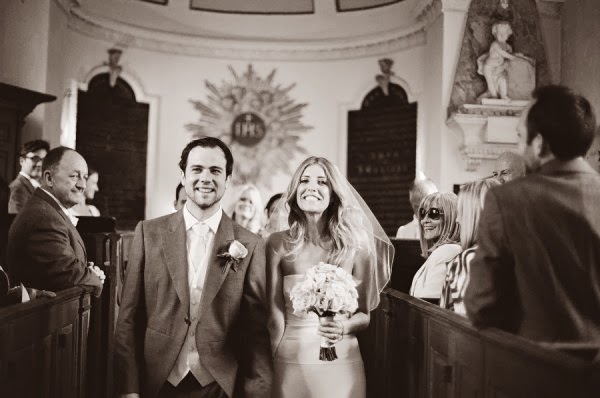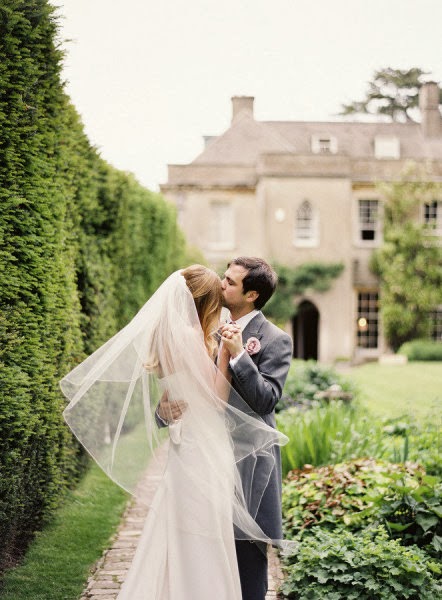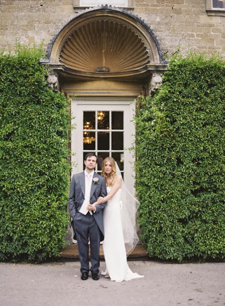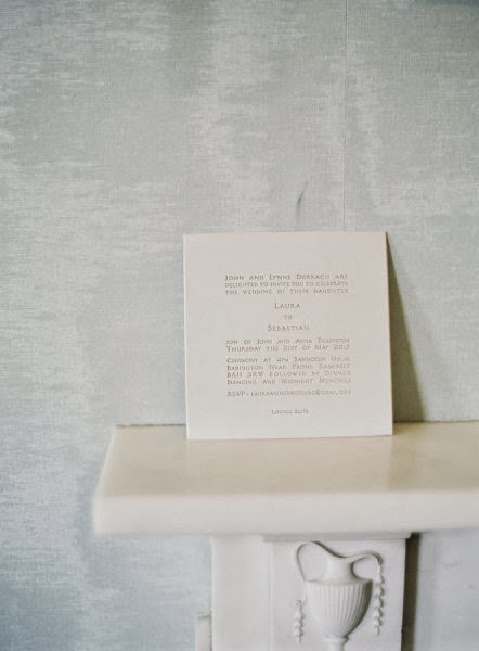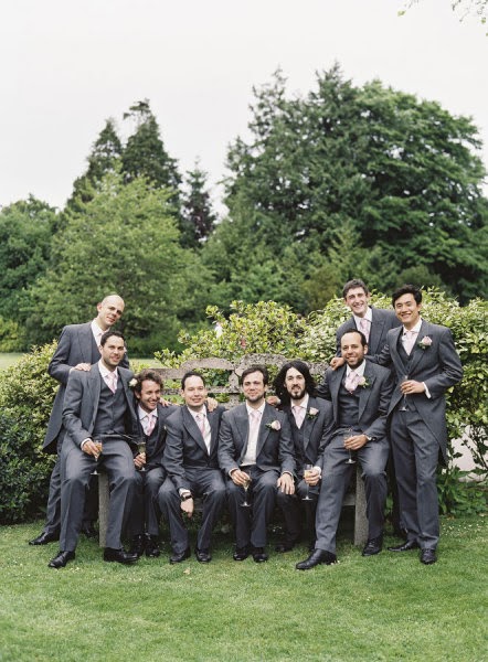 The bride wore Valentino-it could practically be a movie title, which is fitting since Laura and Seb both work in film! In addition to her elegant Valentino gown, the bride wore a glittering pair of Giuseppe Zanotti gold flats and a simple veil, while her maids wore one-shouldered steely gray cocktail dresses. Seb and his pals looked handsome in traditional morning suits and petal pink ties that matched the pastel bouquets and boutonnieres from Flowers by Passion perfectly. The couple chose the luxurious Babington House in Somerset, England to host their relaxed weekend nuptials; they were married in the estate's charming chapel and enjoyed cocktails on the lawn before an intimate family style supper in the Orangery. After cutting into their two-tiered cake from Linda Fripp Designs, the newlyweds and their guests continued celebrating until sunrise, with Polly Alexandre capturing each gorgeous moment!