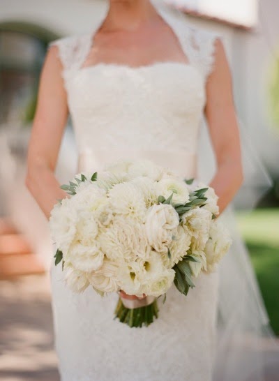 Image by Megan Sorel Photography, bouquet by R. Jack Balthazar, gown by Monique Lhuillier.