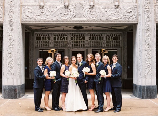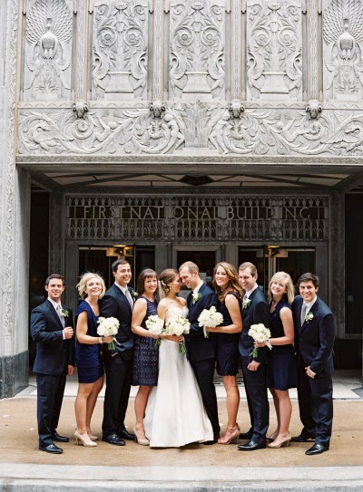 Classic and timeless-like magic to my ears! Kelby and Jeff teamed up with Leslie Herring Events to plan an elegant event at Oklahoma City's First National Center, an Art Deco building constructed in 1931. Every detail was carefully considered, from the invitations by Paper N' More to the unimpeachable palette of navy and white with touches of silver and gold.