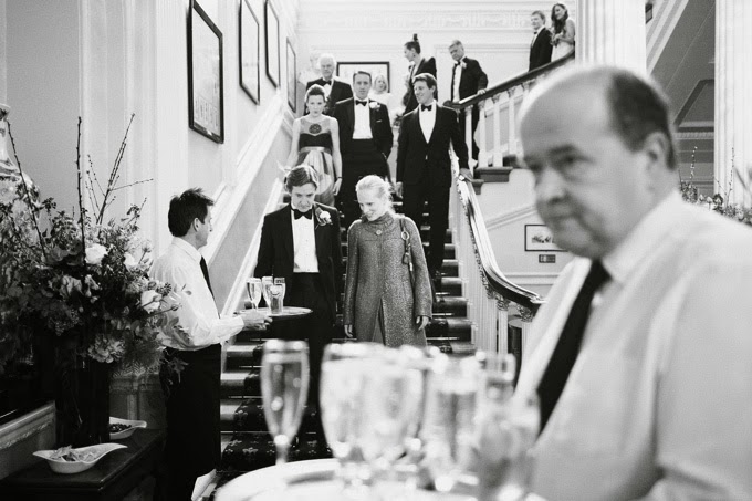 Genevieve and Matt exchanged vows before their guests, seated in a semi-circle, in the King Harald V Room. After the short ceremony, sparkling wine and Pimms cups were served as guests congratulated the newlyweds. After dinner, there was dancing to Benoit & His Orchestra, a 1920's French jazz band and slice of almond and lemon cake with marzipan from Katerina Janakova at Villandry. As the clock struck midnight, guests departed in classic black taxis, but the bride, groom and a few of their closest friends dashed over to the Green Room at the Gore Hotel for a nighcap.