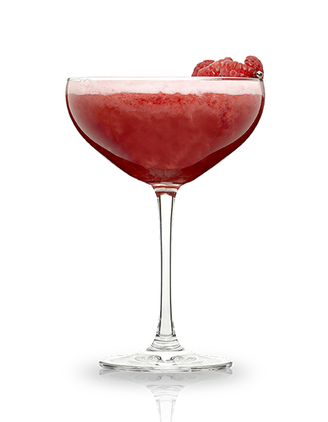 Combine all ingredients in a shaker and shake without ice for 10-15 seconds. Add ice and shake vigorously for an additional 10 seconds. Strain into a highball or large coupe glass filled with ice, and garnish with 3 skewered raspberries.
