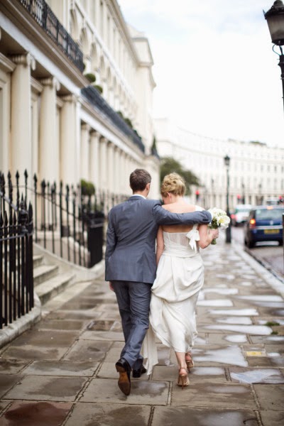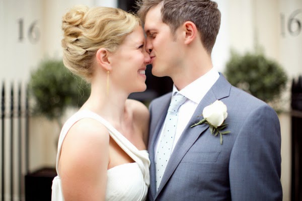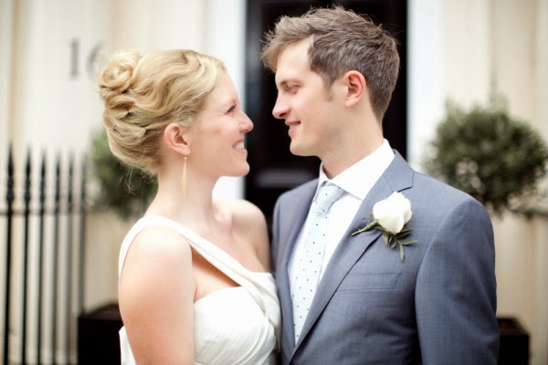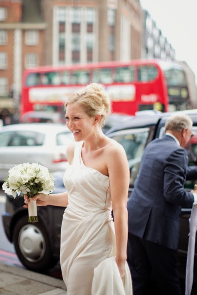 Lying in bed one Saturday morning, Laura asked Hywel, "What shall we do today?" He replied, "Shall we get engaged?" and this London wedding are the lovely results of their courtship.