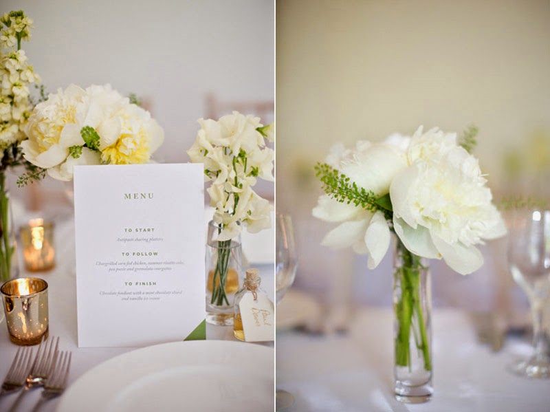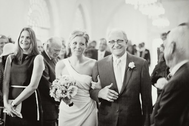 Laura and her father walked down the aisle to "Here Comes the Sun", and her grandfather, a federal judge, officiated the ceremony. After exchanging their own vows, the newlyweds nearly floated back down the aisle to Steve Wonder's "Signed, Sealed, Delivered." Florist Hayford & Rhodes filled the classic gallery space with green and white blooms to highlight the elegant architecture. Inspired by their own dinner parties, the couple and their caterer, Seasoned Events, created a spring menu served family style. Small cork-topped bottles of Welsh whisky served as place cards, and carefully selected wines and beers were chosen to reflect the couple's backgrounds. After dinner, guests got down on the dance floor with Wedding Smashers, and the newlyweds were still dancing as they said goodnight to Caught The Light, their fantastic photographers.