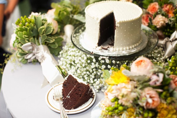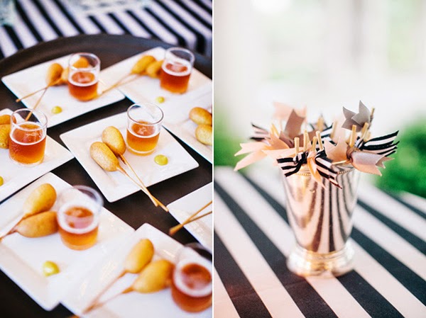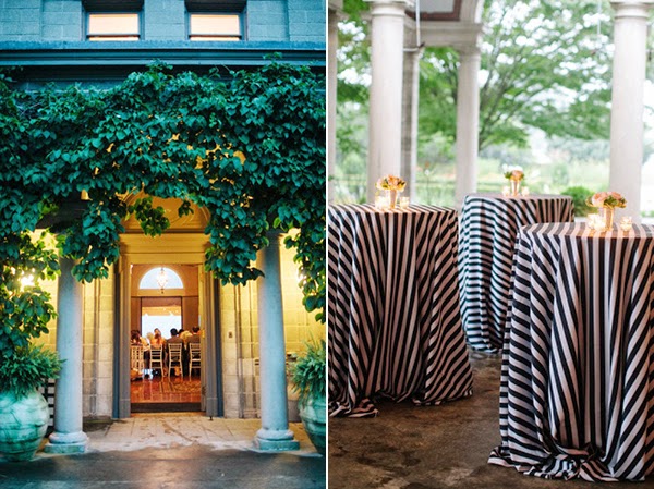 I'm absolutely gaga for these gorgeous images by Katie Stoops, but I'm dying to know which detail is your favorite! Tell me, are you wild about that bouquet, smitten with the black and white striped cocktail tables, or charmed by that swiss dot confection?