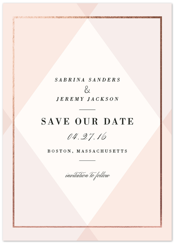 Love this chic combination of blush and lilac, to say nothing of a rose gold border. Think I can send invites to Sunday brunches or for sharing a bottle of bubbly?