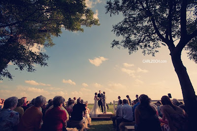 Maybe it's because the groom, in his three-piece suit, reminds me of my sweetheart. Maybe it's the drop-dead gorgeous venue: the ceremony set between two large oak trees with the sun setting warmly behind them and a barn full of your nearest and dearest. Or perhaps it's the Dora, which is always going to do something magical to my heart.Brit and Daniel's wedding, photographed by Carl Zoch, first featured on Ruffled, has been blazing across the blogs and I've been sitting on my hands waiting to show it to you; As No 299 it obviously has a very special place in my heart. These two San Francisco-based designers were married at Brit's childhood farm, and their RSVP cards included a request for recipes which the newlyweds eagerly added to their burgeoning cookbook collection. The entire reception was catered by guests; everyone brought their best dish! Plus, these two had pie after pie, just like I plan to serve for Thanksgiving. Not only was this a beautiful event, it celebrated the love between two incredible people.