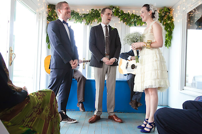 ReplyDeleteGarsh...I love her dress and his shoes! So original! Weddings are so fun these days!