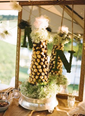 This wedding brought the bride and groom's families together in a magical way: the groom's father, a pastor, married the couple. The bride's sister-in-law's mother (talk about a mouthful!) was Natalie's second-in-command when it came to wedding planning and design. Her friend and bridesmaid baked their croquembouche wedding cake, and another baked the rest of the magnificent dessert table. The couple recruited a buddy who's an electrician strung all the lights and chandeliers at