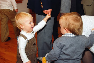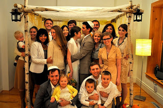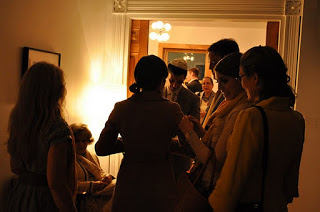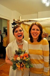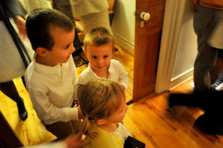 The bride designed her gown, then her mother, a talented seamstress, whipped it up for her, along with the darling flower girls' dresses. Bridesmaids and groomsmen were asked to wear light colors, while Adam wore a seersucker suit from J.Crew with a plaid vintage tie and tie clip. Tessa made felt flower corsages and boutonnieres for the bridal party and ribbon wands for the flower girls, but did count on a florist to build her lovely bouquet, filled with garden roses and billy balls.