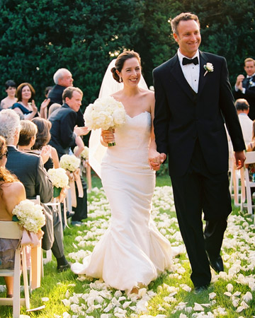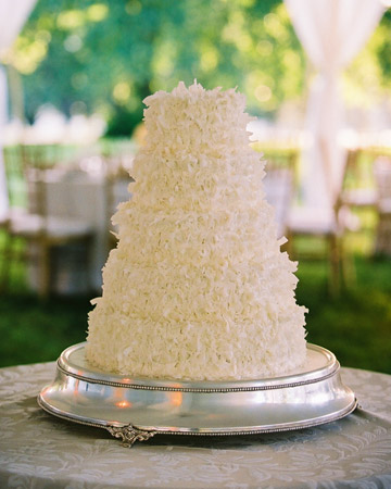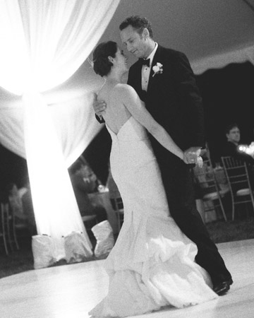 haricots verts, and a slice of the five-tier coconut-covered confection by Cakes of Art. Emme St. James and Her Jazz Gentlemen played jazz standards, including "At Last" for the newlyweds' first dance, while guests dined, but to mark the end of dinner and the beginning of dancing, the couple relied on something truly explosive-fireworks! And talented photographer Jen Fariello was on-hand to capture each gorgeous moment, first spotted on Martha Stewart Weddings!