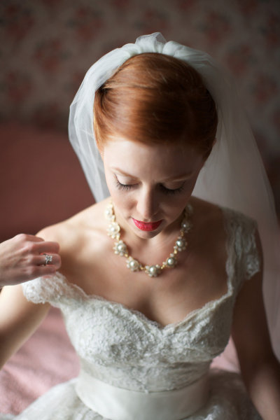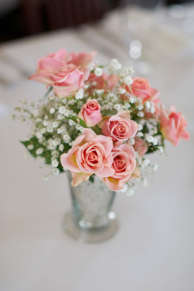 Maybe it was the pretty pink roses, or the floral wallpaper that looked so much like my childhood bedroom, or the fact that I gave John those same monogrammed handkerchiefs a few Christmases ago-but I was in love with this wedding from the moment I first saw it.