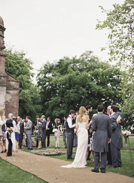 The bride wore Valentino-it could practically be a movie title, which is fitting since Laura and Seb both work in film! In addition to her elegant Valentino gown, the bride wore a glittering pair of Giuseppe Zanotti gold flats and a simple veil, while her maids wore one-shouldered steely gray cocktail dresses. Seb and his pals looked handsome in traditional morning suits and petal pink ties that matched the pastel bouquets and boutonnieres from Flowers by Passion perfectly. The couple chose the luxurious Babington House in Somerset, England to host their relaxed weekend nuptials; they were married in the estate's charming chapel and enjoyed cocktails on the lawn before an intimate family style supper in the Orangery. After cutting into their two-tiered cake from Linda Fripp Designs, the newlyweds and their guests continued celebrating until sunrise, with Polly Alexandre capturing each gorgeous moment!