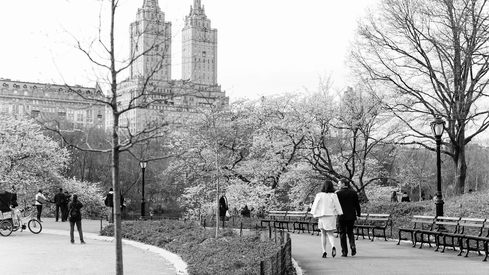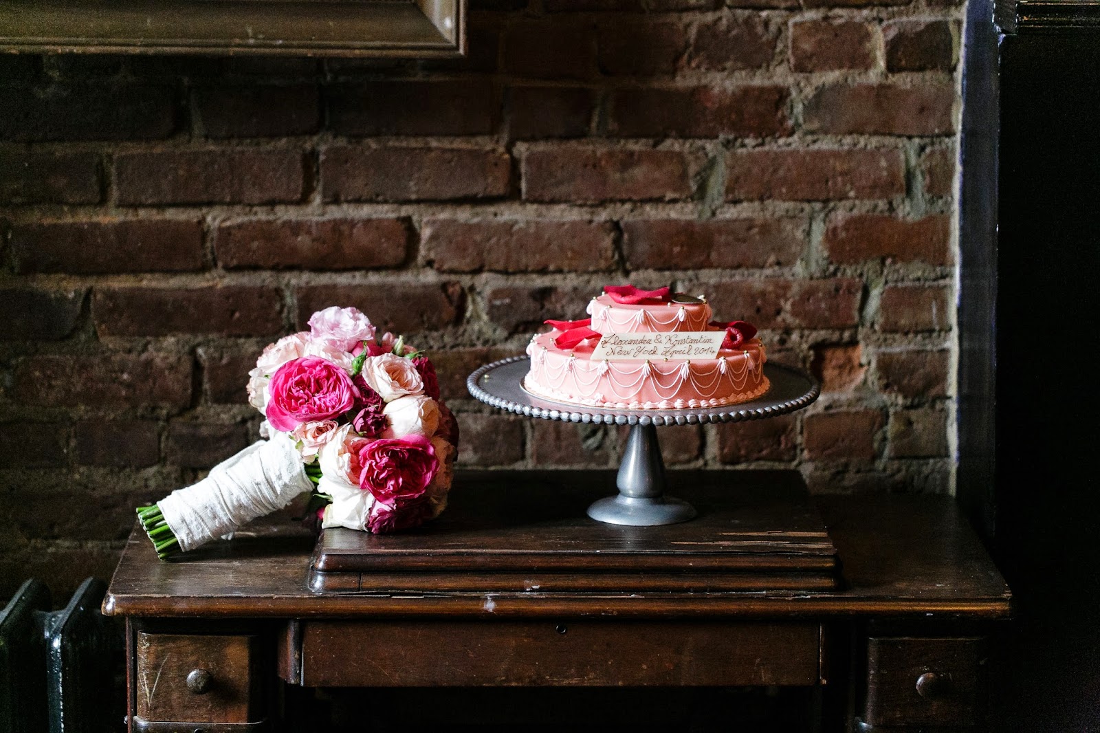 The bride wore Miu Miu and Manolos, and carried a lush bouquet of pink garden roses from Designs by Ahn. Konstantin and Alexandra dressed together in their suite at The Marlton Hotel before catching a cab to their civil ceremony at the Manhattan City Clerk's Office. After portraits in Central Park, the newlyweds and their guests dined in the dining room of Bobo in the West Village. The French meal featured oysters and rillettes served with Champagne, and the evening ended sweetly with a delicate wedding cake from Ladurée.