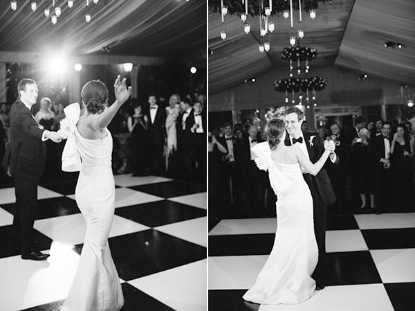 After exchanging their wedding vows in a traditional ceremony at the University Presbyterian Church, the newlyweds and their guests headed to their reception, a tented backyard fête at a private residence in Chapel Hill. Watered Garden had installed a spectacular magnolia wreath chandeliers above the classic black & white tile dance floor, and after dinner, the Sleeping Booty Band got everyone cutting a rug. A slice of buttercream-frosted cake from Cinda's Creative Cakes and a glass of Champagne was the perfect sweet ending to a classic celebration.