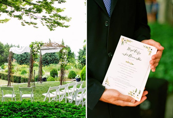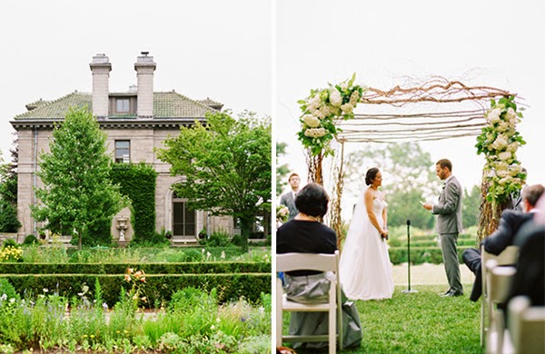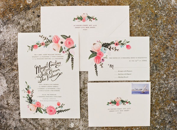 After a romantic Parisian engagement, Marget and Seth set to planning a wedding in the bride's hometown. They chose the spectacular Eolia Mansion in Connecticut's Harness State Park for the festivities, and were inspired by the stunning surroundings in each aspect of their big day, starting with charming invitations from Rifle Paper Co.