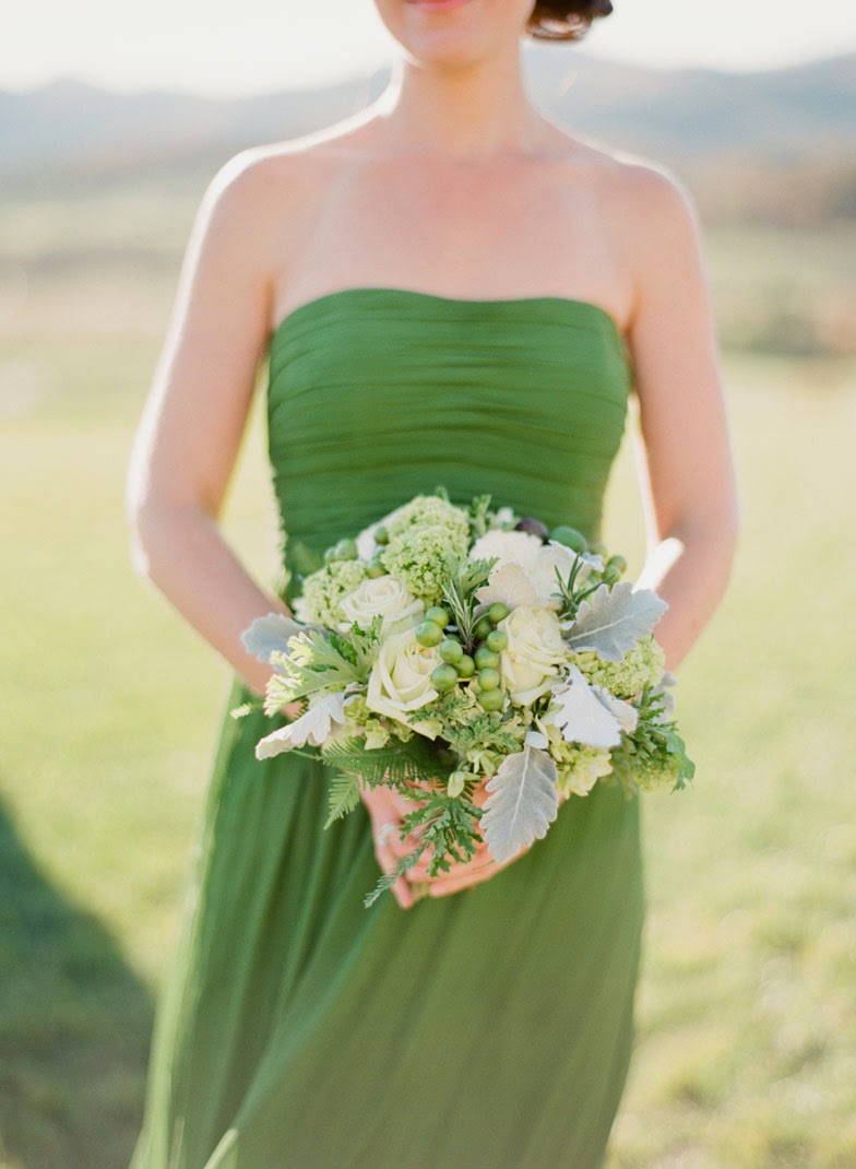 Image by Elisa Bricker, green and gray rose bouquet by Beehive Events.