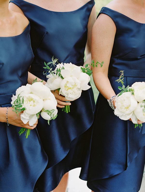 With these classic navy dresses, charming peony bouquets, chilled glasses of rosé, and summer weddings.